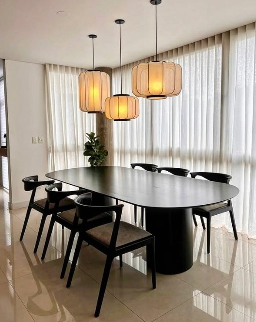 mesa rectangular con bordes circulares y dos patas circulares que lo acompañan en cada lado, puede ir en laqueado negro para generar mas elegencia en tu hogar
