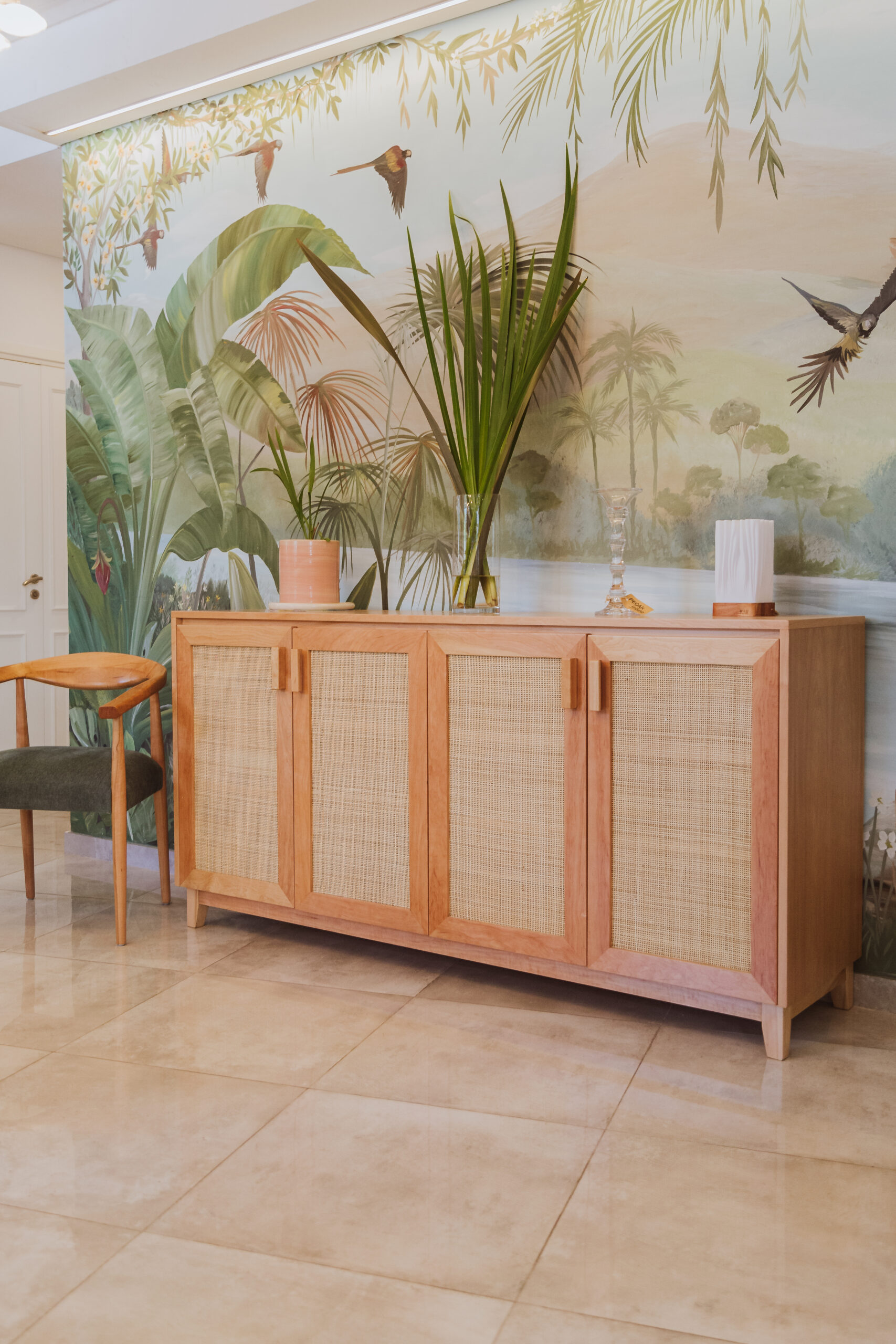 con un estilo frezco, puertas con tejido artesanal, en madera lenga que le da un toque calido